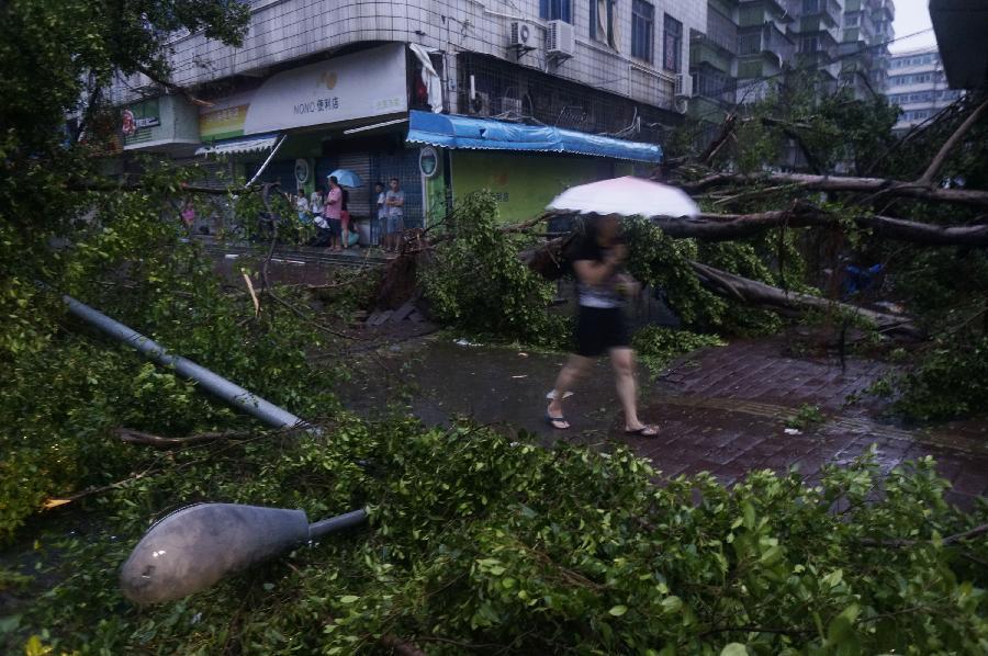 The main coastal street is flooded due to typhoon Mujigae in Zhanjiang city, south China's Guangdong Province, Oct. 4, 2015. (Photo: Xinhua/Wu Lu)