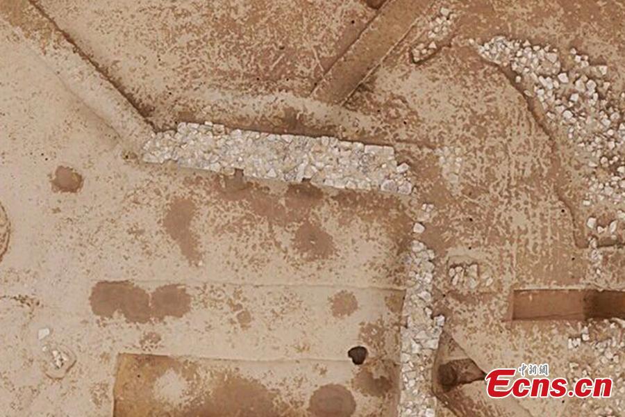 A stone wall is unearthed by archeologists from Shaanxi Provincial Institute of Archaeology. The discovery was made at the Shimao site near Gaojiabao town in Shenmu County in Shaanxi Province on October 10, 2015. The relics belong to the largest city discovered in China that dates back 4,000 years. (Photo provided to China News Service)