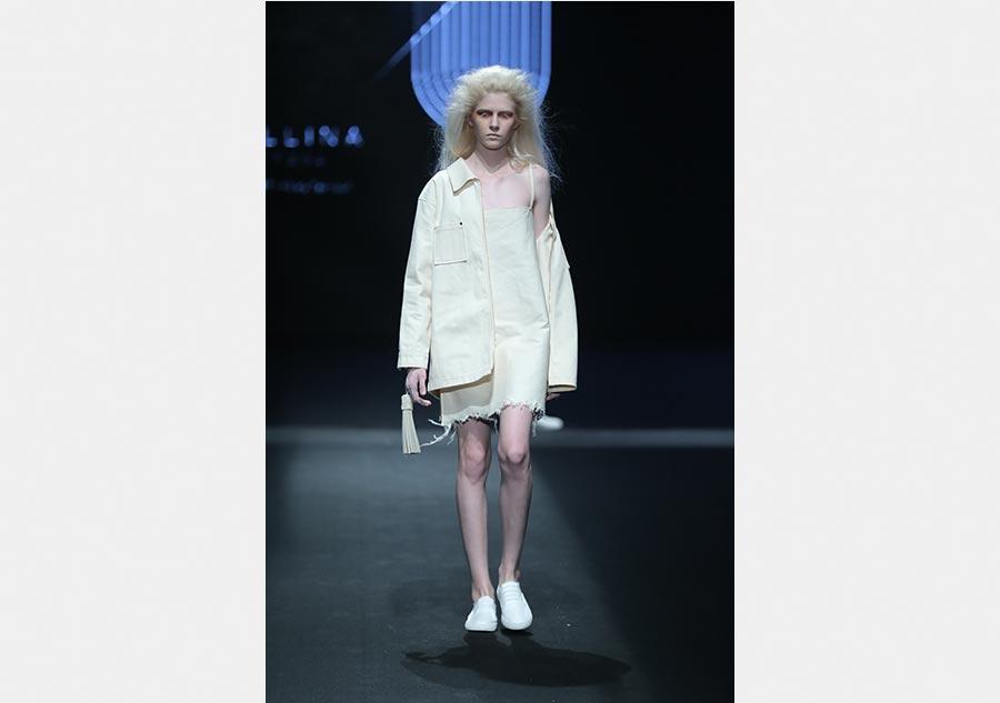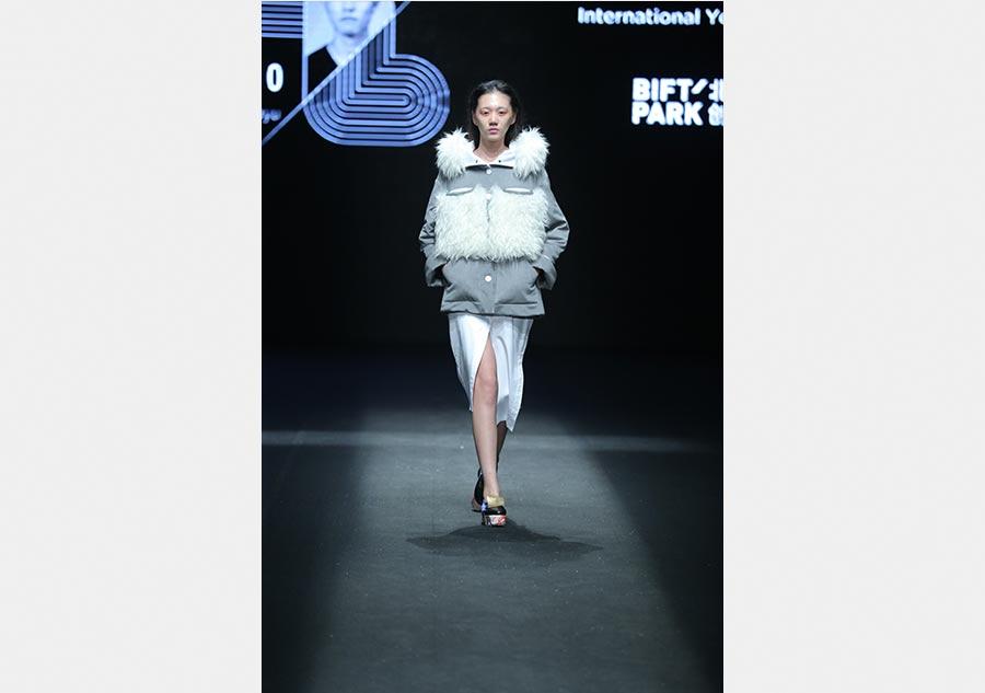 An overlook of the stage of the 2015 International Youth Designers Fashion Show. The 2015 International Youth Designers Fashion Show was held at Beijing Institute of Clothing Technology on October 10, with eight designers receiving awards. The designers, who come from China, South Korea and America respectively, were selected for their products' novelty and good reputation among customers. Over 70 costumes were put on display. (Photo provided to chinadaily.com.cn)