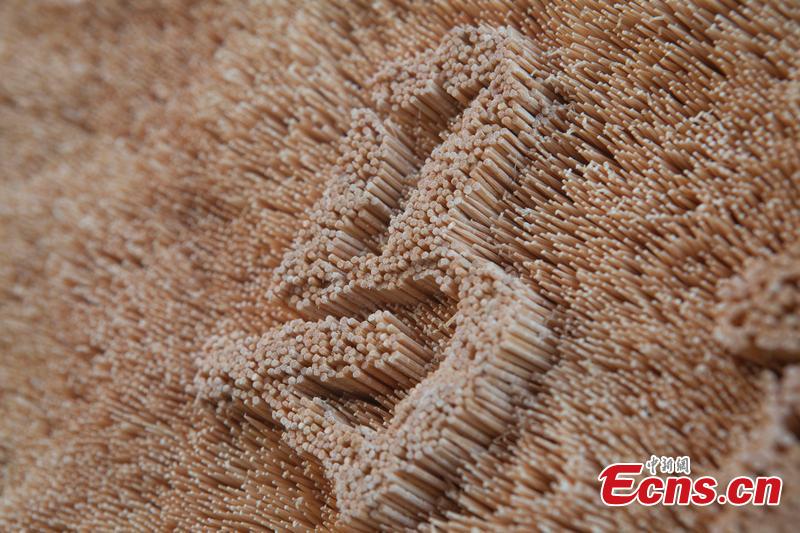 The photo taken on October 14, 2015 shows a stunning artwork created with toothpicks by Liu Xuedong in Changchun, Northeast China’s Jilin province. It took the 38-year-old art enthusiast three months to get all of the 500,000 toothpicks in place and make the three-dimensional “painting” depicting a running horse. (Photo/CFP)