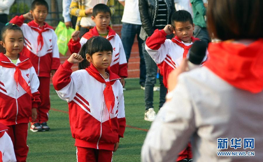 Photo taken on Oct. 13, 2015 shows that young pioneers around China take part in activities marking the 66th anniversary of founding of Chinese Young Pioneers. (Source/Xinhuanet)