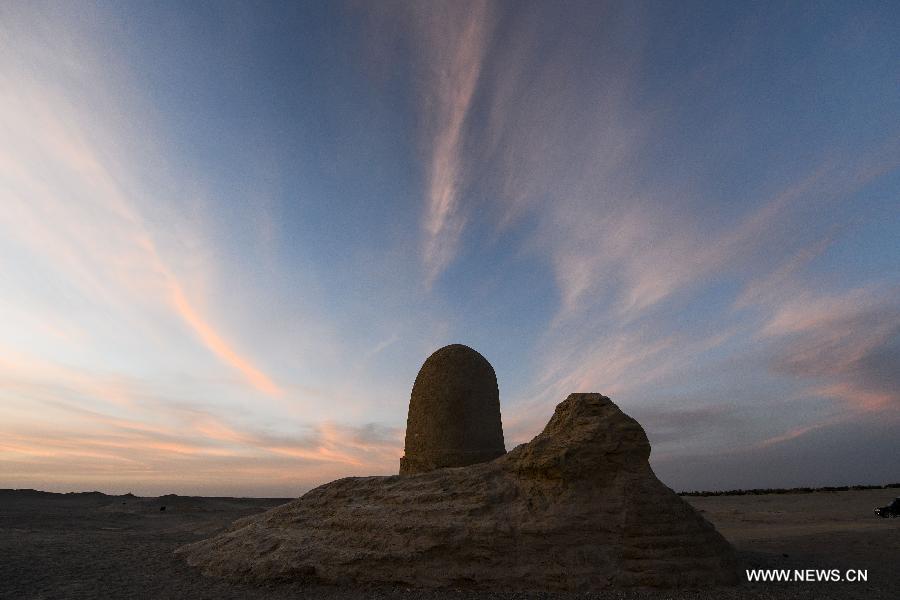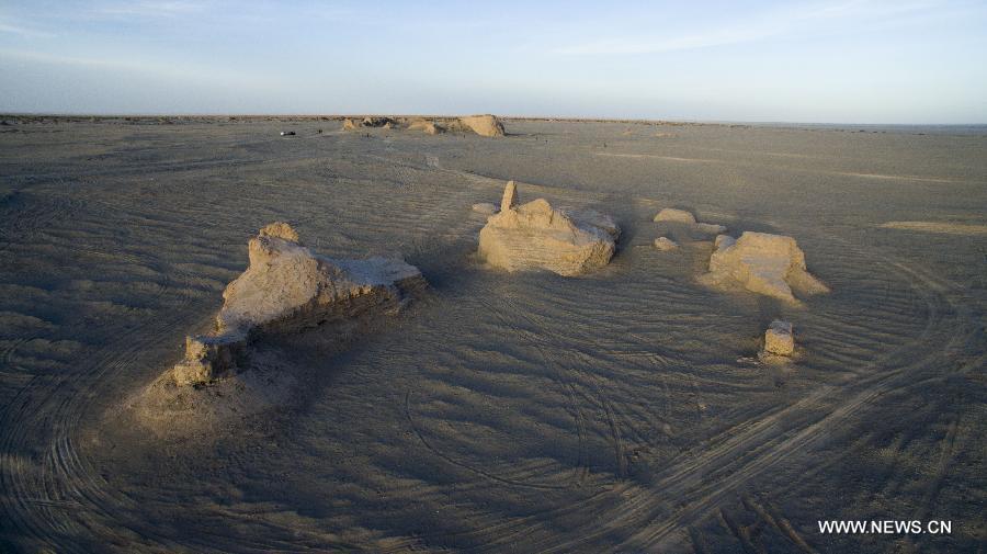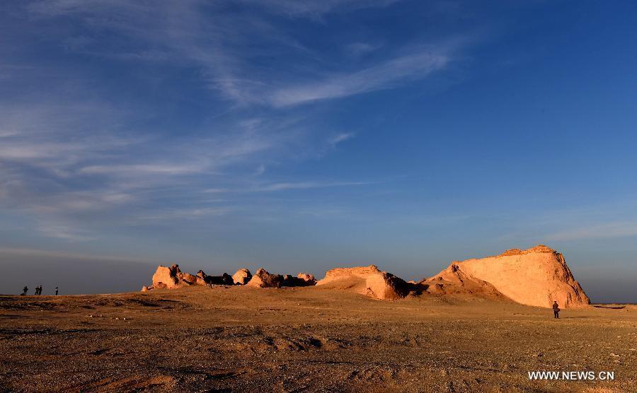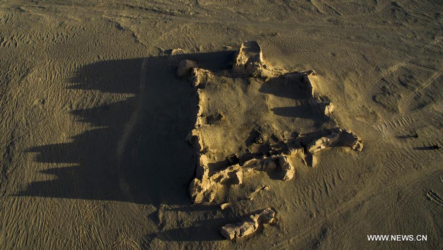 Photo taken on Oct. 14, 2015 shows ruins of the ancient city of Milan, some 80 kilometers to the east of Qarilik (Ruoqiang) County, northwest China's Xinjiang Uygur Autonomous Region. Milan, laying on the south of Taklimakan Desert, was an important town on the ancient "Silk Road", and was recorded in the narrative of Xuan Zang's pilgrimage to India in the Tang Dynasty (618-907). (Photo: Xinhua/Jiang Wenyao)