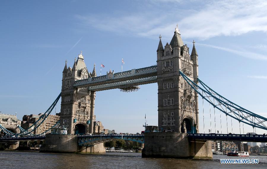 Photo taken on Oct. 22, 2014 shows the Tower Bridge of London. London, located in southeastern England, is the capital of the United Kingdom. Standing on the River Thames, the city plays a key role in the world's financial, commercial, industrial and cultural fields. (Photo: Xinhua/Han Yan)
