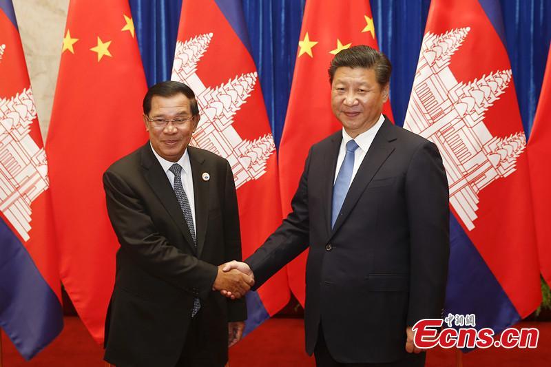 Chinese President Xi Jinping (R) meets with Cambodian Prime Minister and President of the Cambodian People's Party Hun Sen in Beijing, China, Oct. 15, 2015. (CNS photo/Sheng Jiapeng)