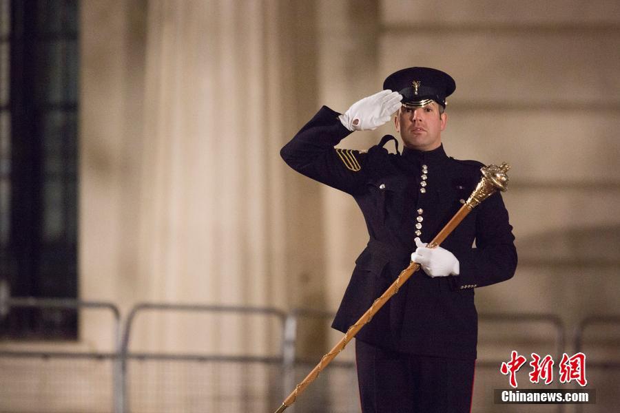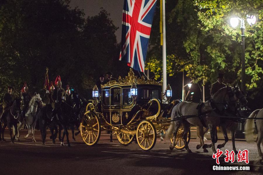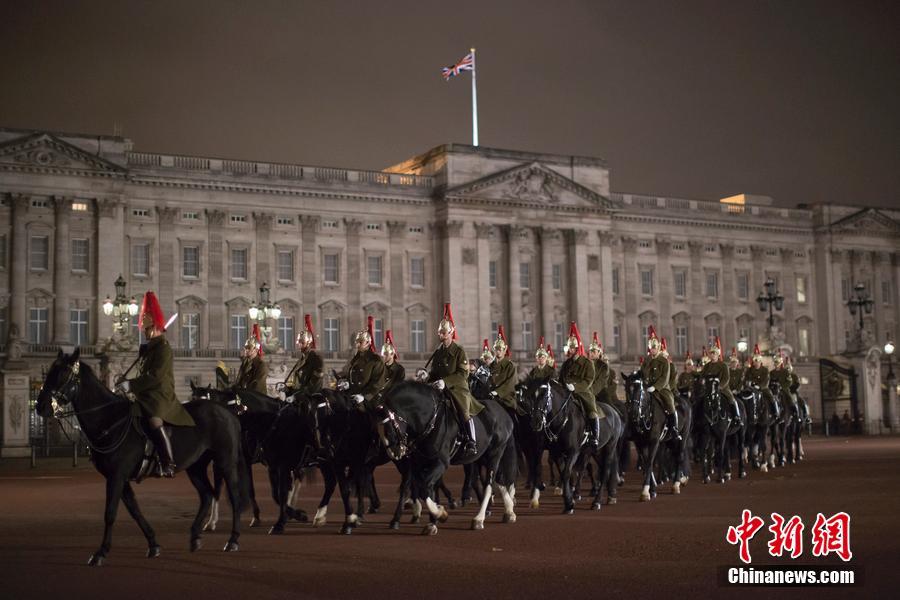 Members of the Grenadier Guards, the Queen's Color and Army musicians, conduct a full dress rehearsal for the guard of honor early in the morning on Friday, in preparation for President Xi Jingping's state visit to the UK next week. Xi's visit will start on Tuesday, when the Prince of Wales and the Duchess of Cornwall will escort him from the Mandarin Oriental Hotel to Horse Guards Parade in London. The Queen will host a state banquet for Xi and his wife Peng Liyuan. (Photo/CFP)