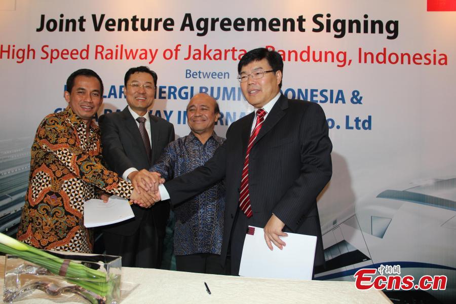 Delegates attend the Joint Venture Agreement signing ceremony in Jakarta, Indonesia, Oct. 16, 2015. Senior officials of Chinese and Indonesian consortiums signed an agreement here on Friday to launch a joint venture for a high-speed railway linking Jakarta with West Java provincial capital of Bandung. (CNS photo/Gu Shihong)