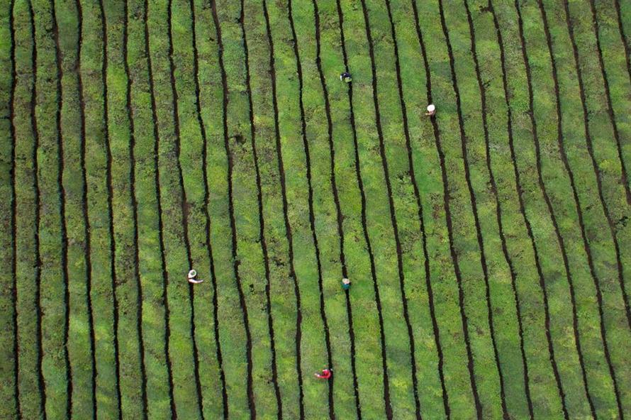 An aerial view shows boats being anchored in a bay as Typhoon Chan-Hom approaches Taizhou, Zhejiang province, July 9, 2015. (Photo/Chinadaily.com.cn)