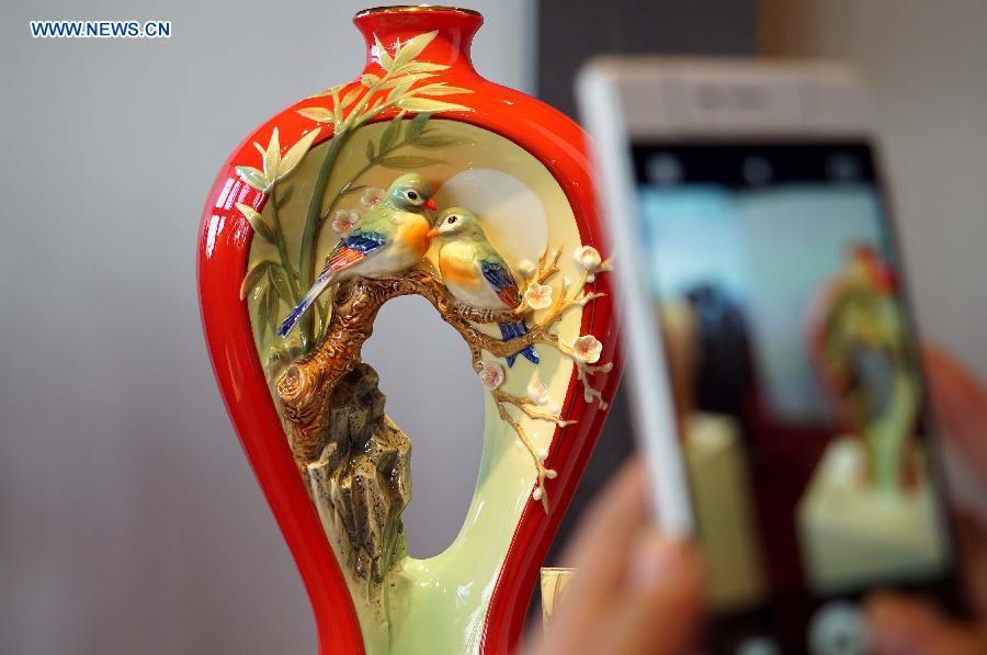 Visitors view exhibits at the 2015 China Jingdezhen International Ceramic Expo in Jingdezhen, east China's Jiangxi Province, Oct. 18, 2015. The five-day expo, opened on Sunday, attracted more than 910 ceramic enterprises and trade firms from China and aboard. (Photo: Xinhua/Chen Zixia)