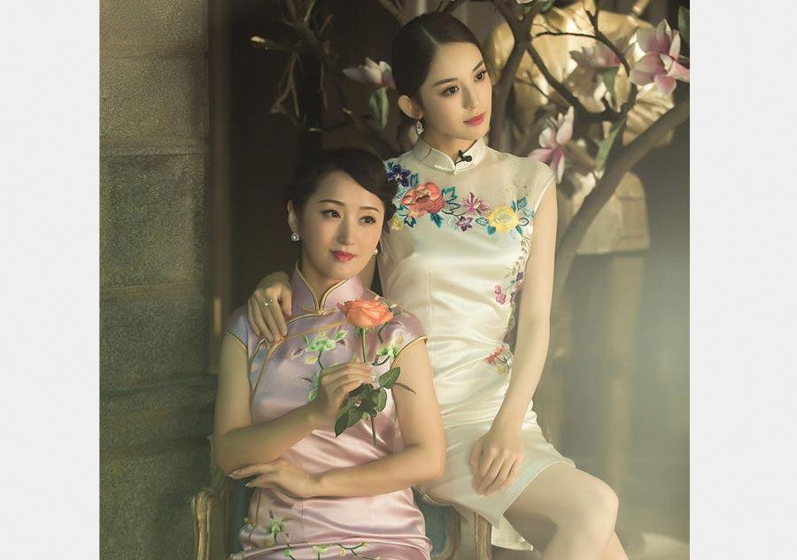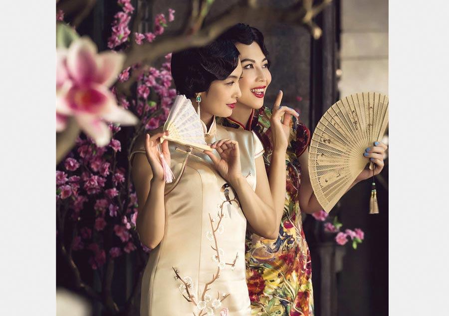 The reality show "idol is coming" presents nostalgic photos of female celebrities wearing Cheongsam, a traditional Chinese dress. (Photo/Xinhua)