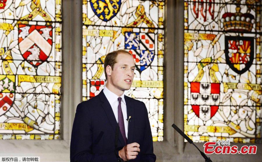 Prince William delivers a speech live on CCTV, highlighting threat to species by illegal wildlife products trade at King's College, in London on Monday, Oct. 19, 2015. (Photo/Agencies)