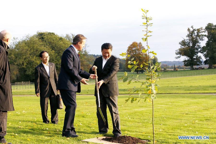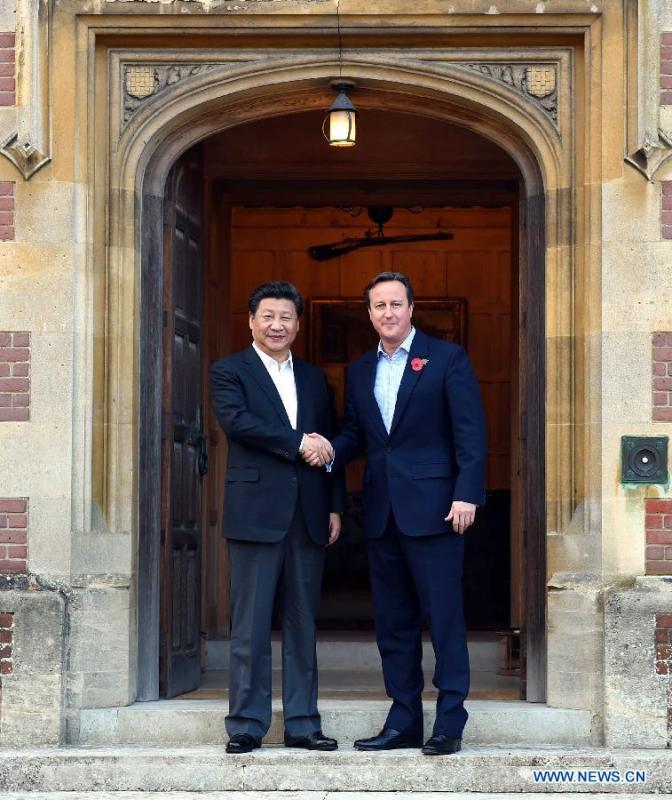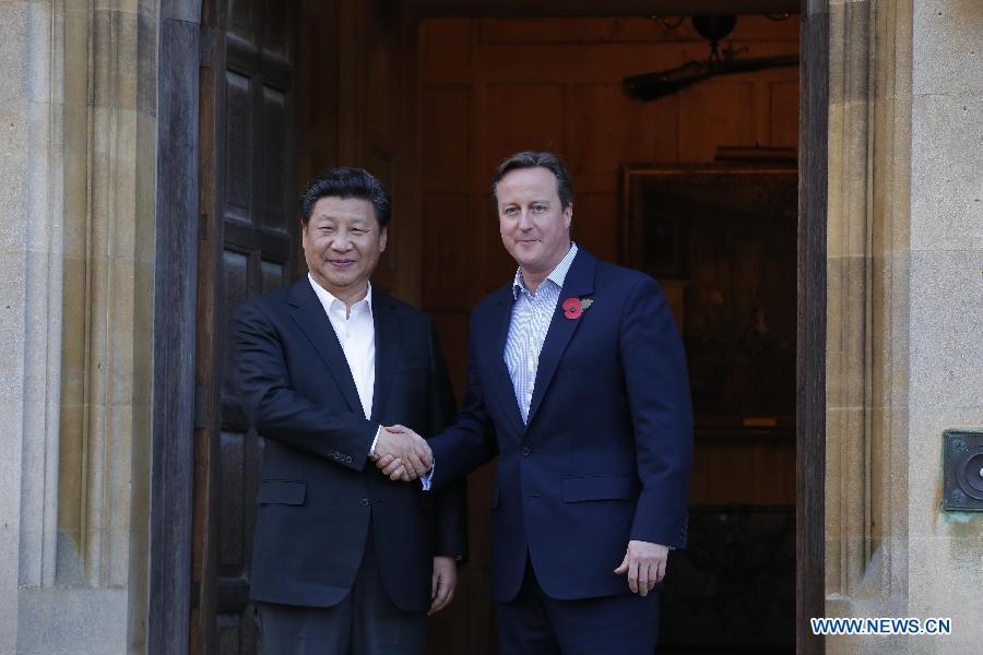 Chinese President Xi Jinping (L) meets with British Prime Minister David Cameron at the latter's country retreat, Chequers, Britain, Oct. 22, 2015. (Photo: Xinhua/Ju Peng)
