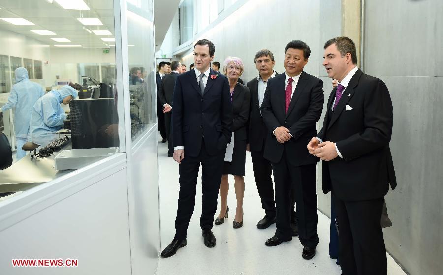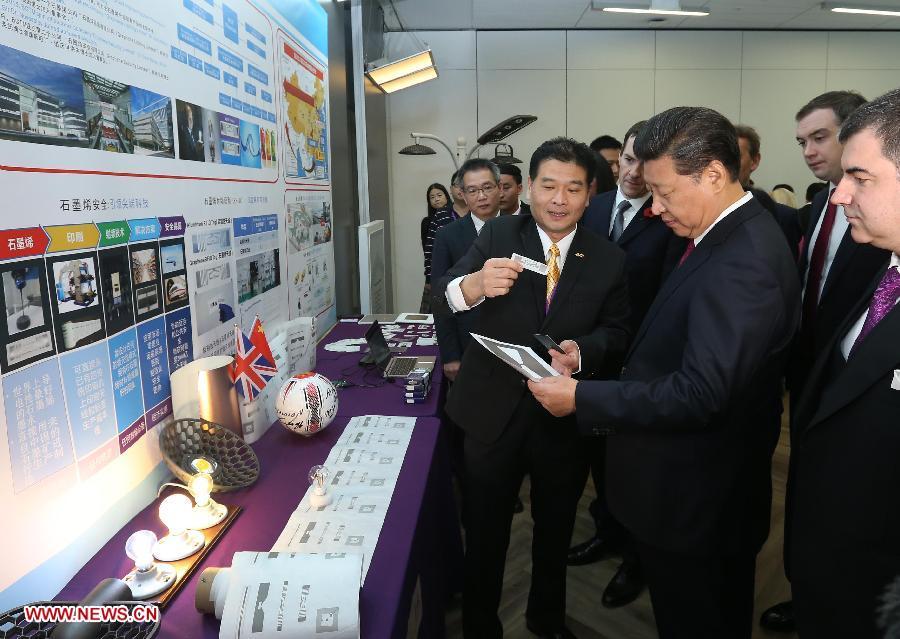 Chinese President Xi Jinping (2nd R) visits the National Graphene Institute at the University of Manchester in Manchester, Britain, Oct. 23, 2015. (Photo: Xinhua/Zhang Duo)