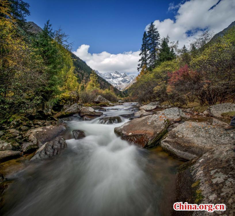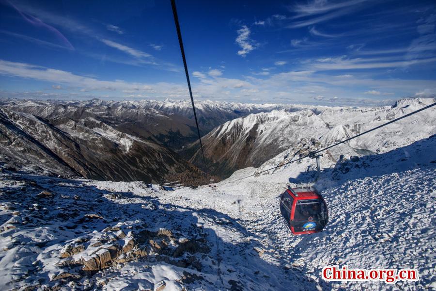Dagu Glacier Scenic Area is situated in Heishui County of the Aba Tibet and Qiang Autonomous Prefecture, about 270 kilometers away from Chengdu, southwest China’s Sichuan Province. It has 13 modern mountain glaciers, with an ice-covered area of 6.04 square kilometers. It is home for more than 1,000 varieties of wild plants and 153 wild animals. The scenic area is rich in glaciers, snow-capped peaks, colorful forests, lakes, Tibetan villages, and other resources. (Photo: China.org.cn/Liu Guoxing)