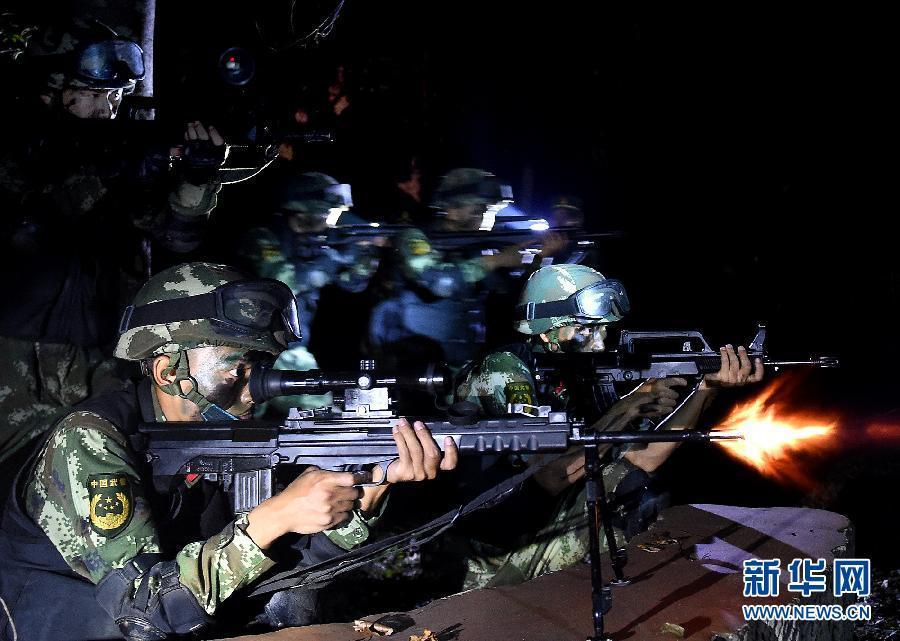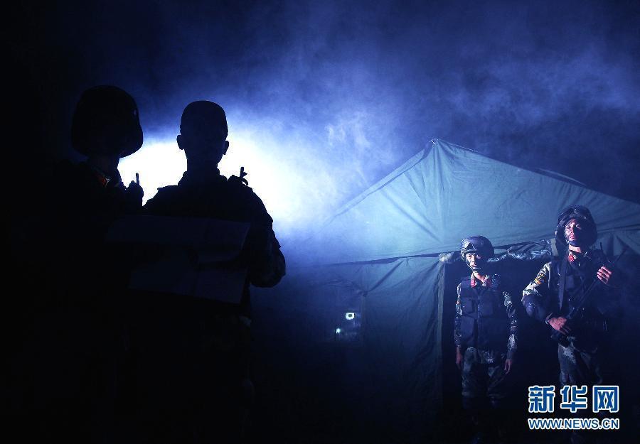 Armed police officers participate in an anti-terror drill in Shanghai municipality on Sunday night, October 25, 2015. The exercise aimed to examine the emergency response systems of local police and to improve coordination of police officers. (Photo/Xinhua)