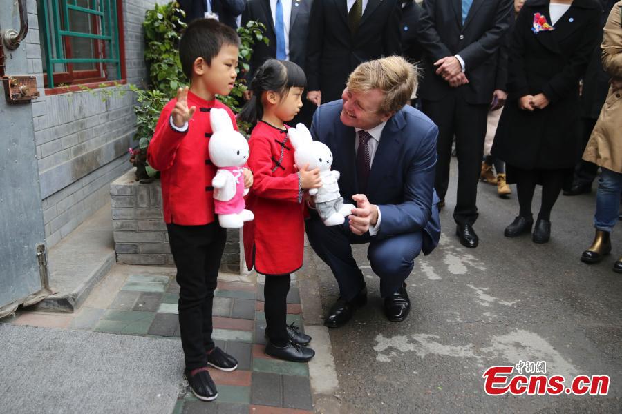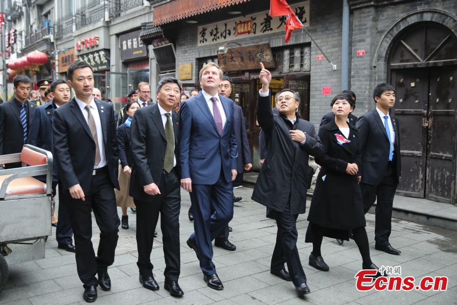 Dutch King Willem-Alexander (L3) visits Dashilar, one of the oldest hutong (traditional Beijing alley) areas in Beijing, October 26, 2015. (Photo: China News Service/Xiong Ran)
