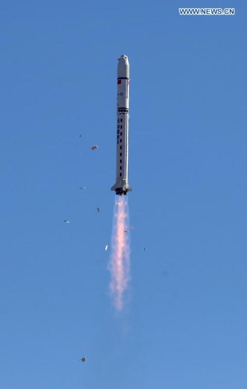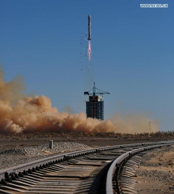 A Long March-2D carrier rocket carrying the Tianhui-1C mapping satellite blasts off from the launch pad at the Jiuquan Satellite Launch Center in northwest China's Gansu Province, Oct. 26, 2015. Designed by a subsidiary of the CASTC, Tianhui-1C is the third satellite in the Tianhui-1 series and will be used for scientific experiments, land resource surveys, mapping, crop yield estimation and disaster relief. (Photo: Xinhua/Yang Shiyao)