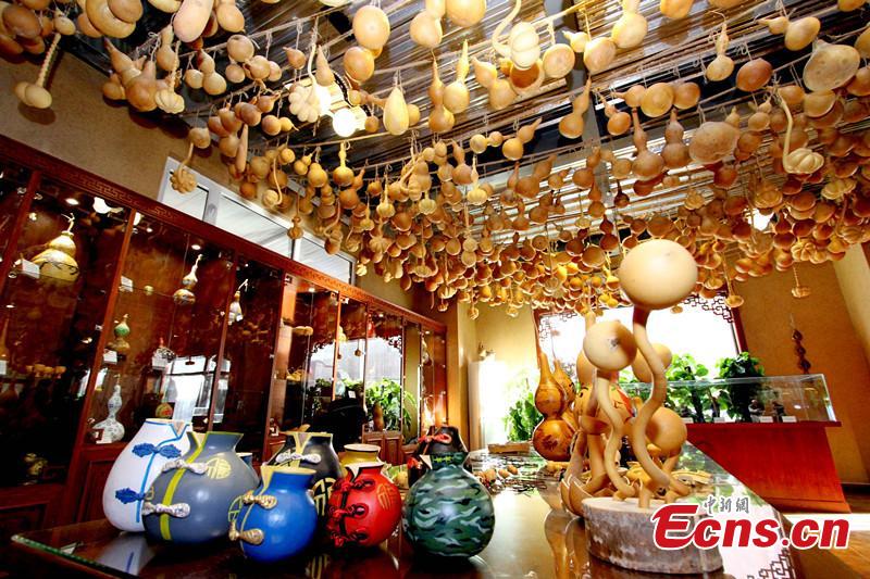 Oct. 27th, Tianjin, many Tianjin gourds are exhibited in a shop. Many products which made of gourd are getting popular at overseas. (CNS photo/Zhang Daozheng)