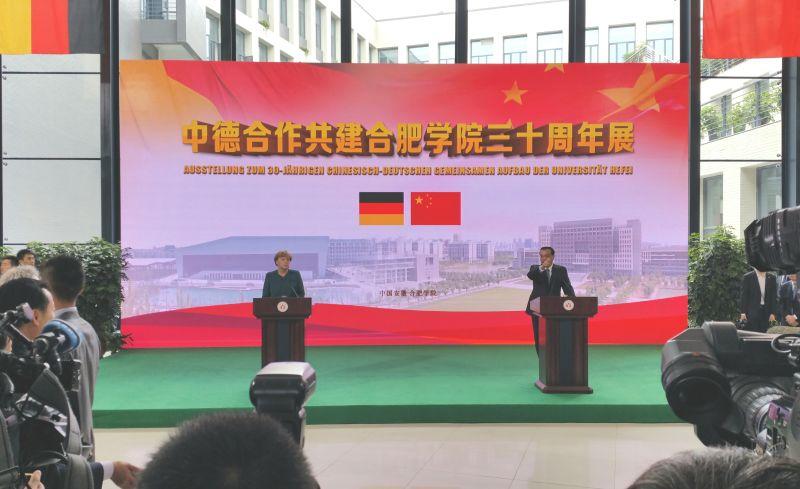 Chinese Premier Li Keqiang and German Chancellor Angela Merkel visited Hefei University in Anhui Province on Friday. (Photo/gov.cn)
