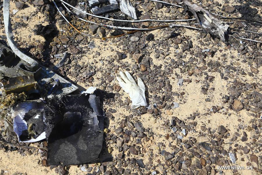 Rescue workers search at the crash site of the Russian passenger airplane at the Hassana area in Arish city, north Egypt, on November 1, 2015. Egyptian and international investigators on Sunday have begun probing the reasons of the Russian plane that crashed in Egypt's Sinai peninsula on Saturday which killed all 224 on board. (Photo: Xinhua/Ahmed Gomaa)