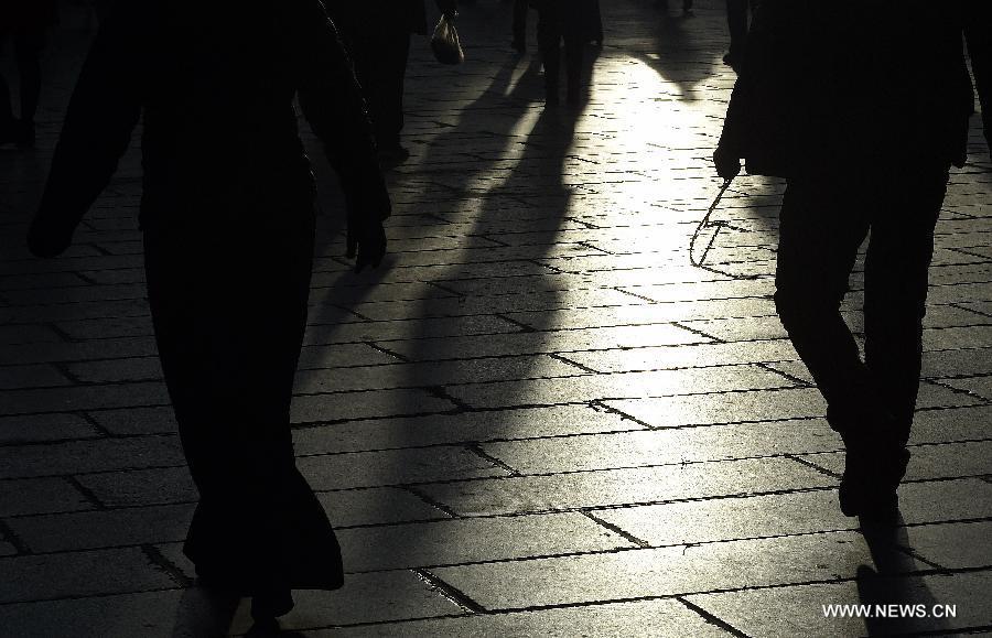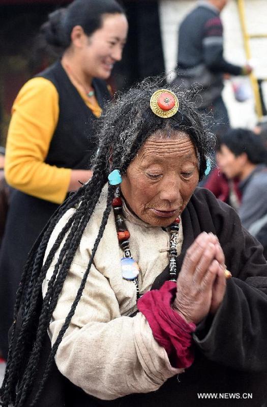 Tibetan Buddhism believers circle the Jokhang Temple on the Porgor (or Barkhor) Street in Lhasa, capital of southwest China's Tibet Autonomous Region, Nov. 3, 2015. The annual Tibetan festival Lhapad Duchen, day to commemorate Buddha's descent from Heaven on Sept. 22 of Tibetan calendar, falls on Tuesday this year. (Photo: Xinhua/Chogo)