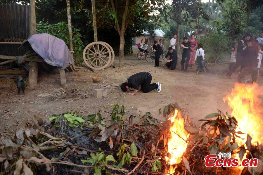A volunteer pays respects to soldiers who were killed in Myanmar while fighting the Japanese during World War II at the site where remains of expeditionary soldiers were found in the northern suburb of Myitkyina, Myanmar. Descendants of expeditionary soldiers and volunteers arrived in myitkyina on Wednesday morning. They will take remains of the 347 soldiers home on Thursday, November 5, 2015. This is the largest collection of such remains ever to be returned. It will arrive in southwest China’s Yunnan province on Thursday. In 1942, China sent 100,000 expeditionary soldiers to Myanmar and India to fight the Japanese forces with the Allies. Nearly half of them were killed or injured.(Photo/CFP)