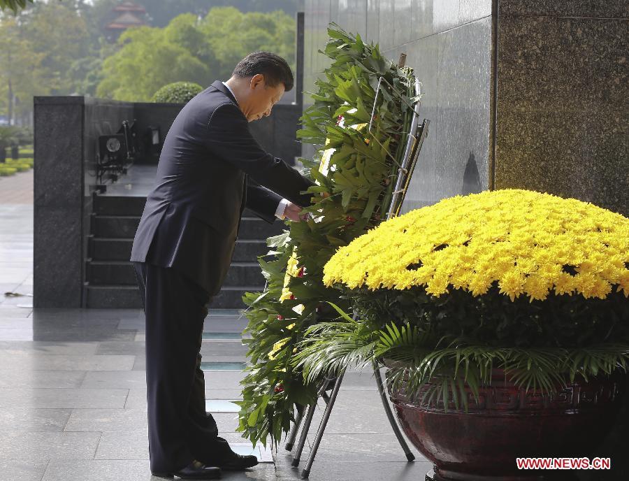 Chinese President Xi Jinping attends a wreath laying ceremony at the Ho Chi Minh Mausoleum in Hanoi, Vietnam, Nov. 6, 2015. (Photo: Xinhua/Lan Hongguang)