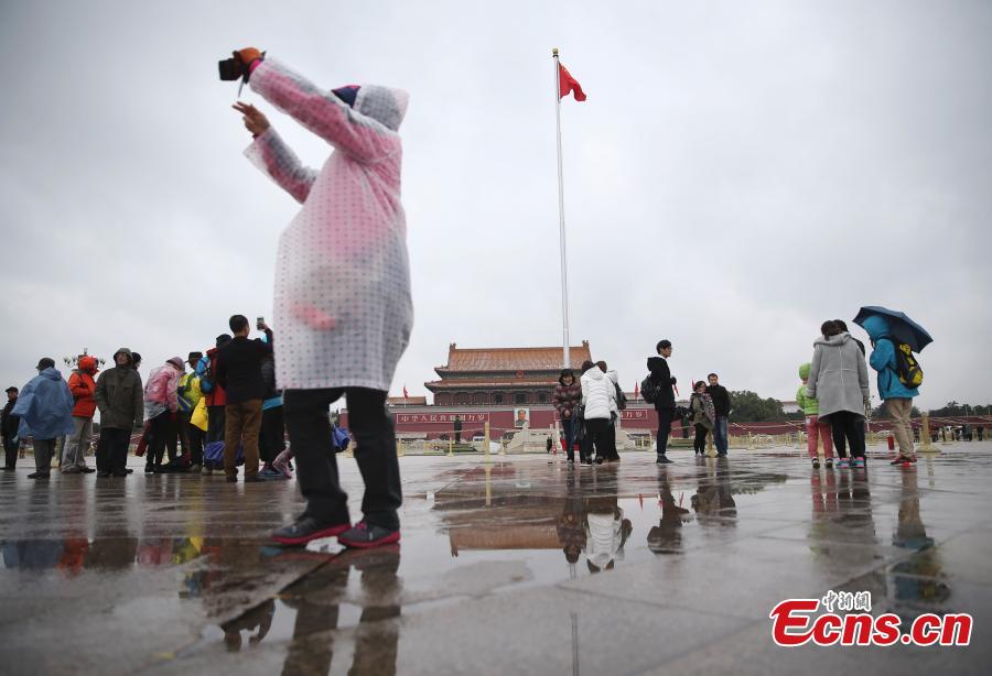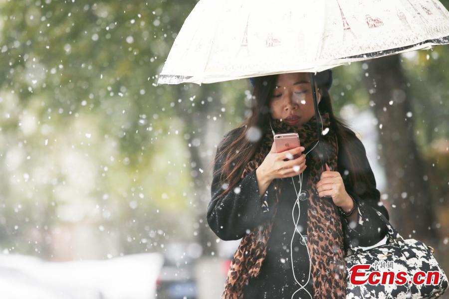 A deicing vehicle clears snow off a plane at Capital International Airport in Beijing, capital of China, Nov. 6, 2015. Some flights of the airport were delayed or cancelled due to the city's first snowfall in this winter. (CNS photo/Liu Zhen)