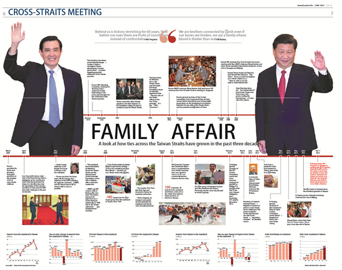 Xi Jinping and Ma Ying-jeou are to meet at 3 p.m. Saturday at the Shangri-La Hotel in Singapore, marking the first face-to-face exchange and communication between the two leaders across the Taiwan Straits since 1949.