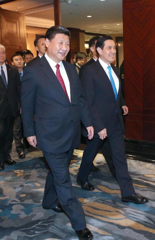 Xi Jinping (R) shakes hands with Ma Ying-jeou during their meeting at the Shangri-La Hotel in Singapore, Nov. 7, 2015. (Photo: China News Service/Liao Pan)