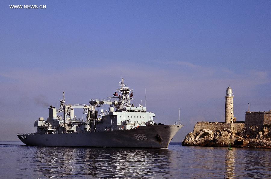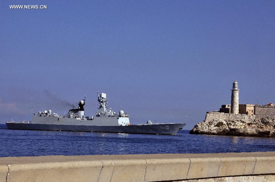 A ship of the Chinese Navy arrives at the port of Havana, Cuba, on Nov. 10, 2015. A flotilla of Chinese warships visited Havana to mark the 55th anniversary of the establishment of diplomatic ties between China and Cuba. (Photo: Xinhua/Joaquin Hernandez)