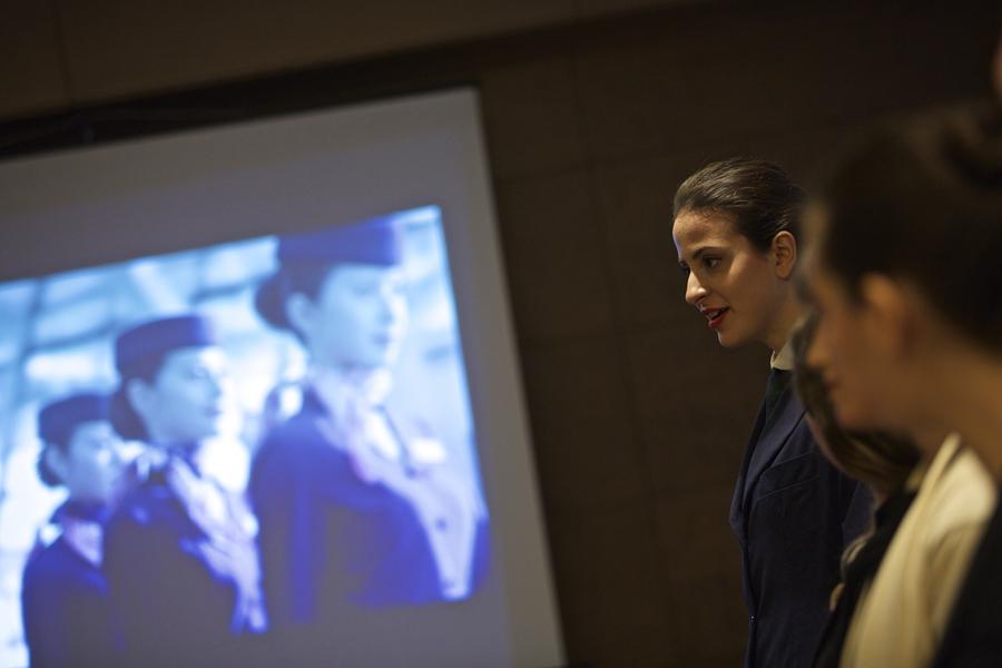 Applicants enter during a recruitment event held by Chinese carrier China Eastern Airlines, in Rome, Italy, Nov 17, 2015. (Photo/Xinhua)