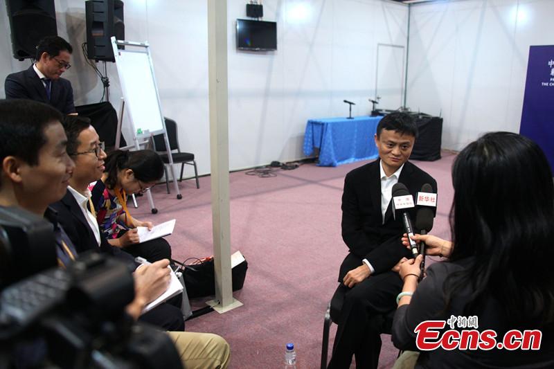 Nov. 18th, Manila, Ma Yun, chairman of Alibaba group, is having an interview at the 23rd APEC summit press center. Ma Yun gave a speech at the APEC economic leaders' summit on the same day. (CNS photo/Zhang Ming)