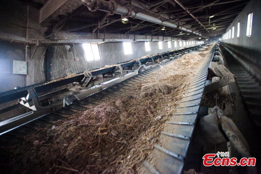 Workers dump shredded banknotes at an incineration power plant in Yancheng, East China’s Jiangsu province. Nearly 150 tons of damaged bills worthworth 15 billion yuan($2.3 billion) are bunt in the plant every month to generate electricity for local residents. To ensure the discarded bills are burned entirely, the compressed, shredded matter is further processed into powder and then mixed with straw. (Photo/CFP)