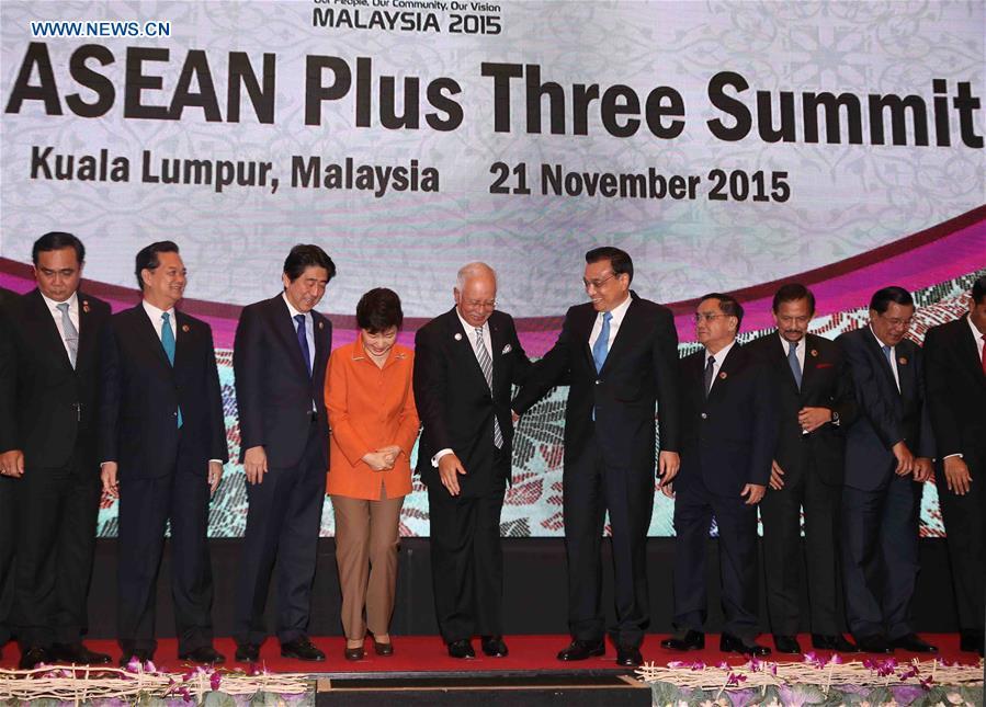Chinese Premier Li Keqiang (5th L) poses for a group photo with ASEAN members' leaders during the 18th ASEAN-China summit in Kuala Lumpur, Malaysia, Nov. 21, 2015. (Photo: Xinhua/Huang Jingwen)