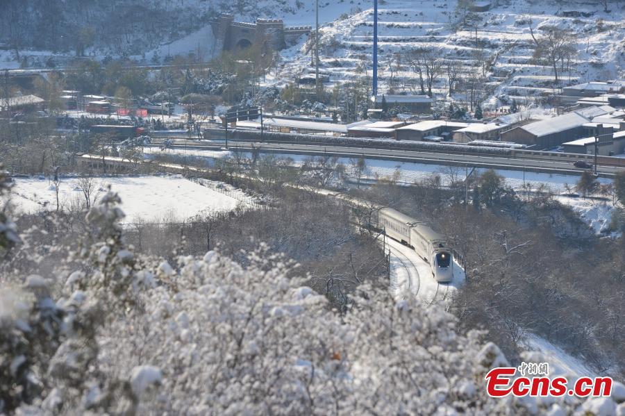The Juyongguan section of the Great Wall is seen covered in snow in Beijing on Nov 23, 2015. (Photo/CFP)