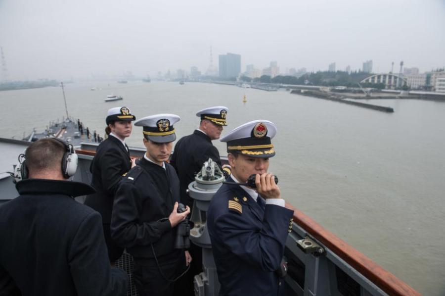 The type 054A missile frigate Zhoushan of the Chinese Navy and USS Stethem, a guided missile destroyer of the U.S. Navy, hold a joint maritime exercise in the East China Sea in recent days. The exercise featured flashing signaling, searches and rescues and responses to accidental meeting of warships from China and the U.S. (Photo/Official weibo of People's Daily Online)