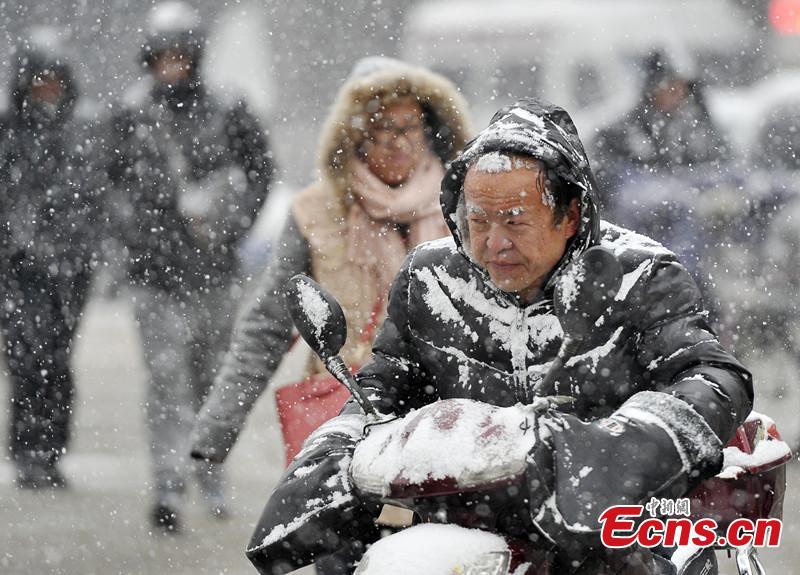 Photo taken on Nov. 24, 2015 shows the snow scenery in Jinan, capital of east China's Shandong Province, Nov. 24, 2015. Many parts of the province witnessed a snowfall on Tuesday. (CNS photo/Zhang Yong)