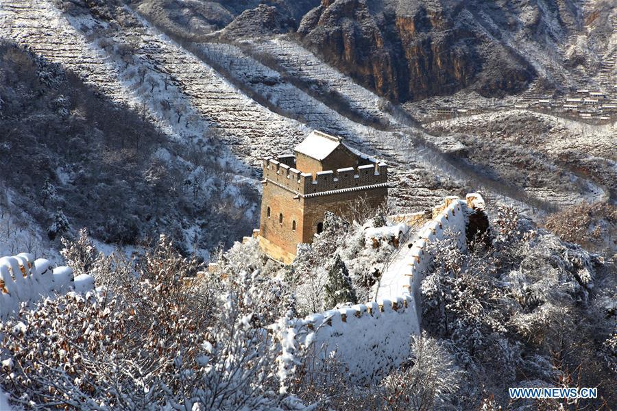 Photo taken on Nov. 23, 2015 shows the scenery of Huangyaguan section of the Great Wall after a snowfall in Tianjin, north China. (Photo: Xinhua/Yang Yanbo)