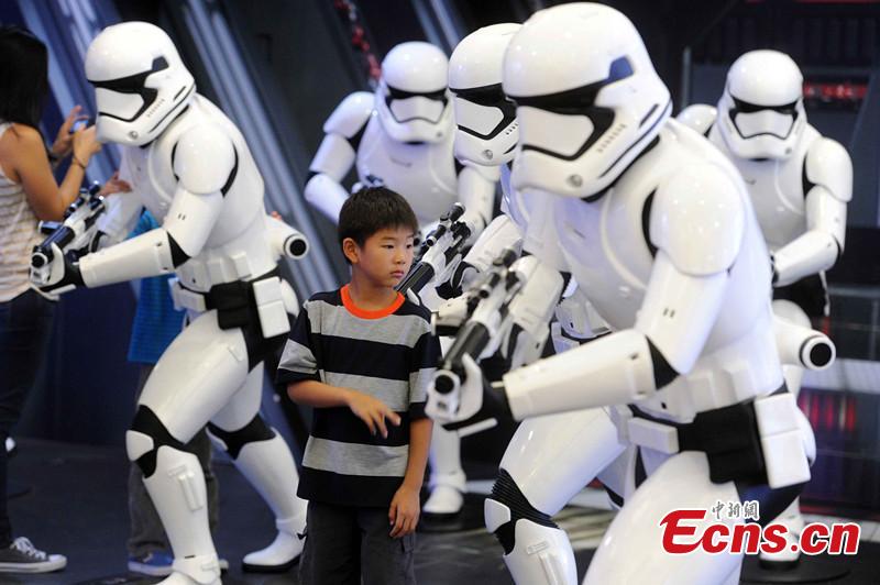 Staff members arrange for a Star War exhibition at Time Square in Hong Kong on Nov. 24, 2015. Lego-Star War exhibition will be held here from Nov. 25, 2015 to Jan.1, 2016. Classic scenes in Star War will be represented by Lego models. (CNS photo/Tan Daming)