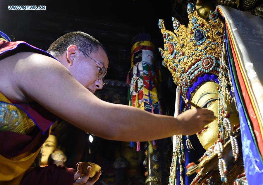 The 11th Panchen Lama visits a yak museum in Lhasa, capital of southwest China's Tibet Autonomous Region, Nov. 26, 2015. The Panchen Lama, who arrived in Lhasa on Tuesday, will hold several more activities in the holy city of Tibetan Buddhism. (Photo: Xinhua/Chogo)