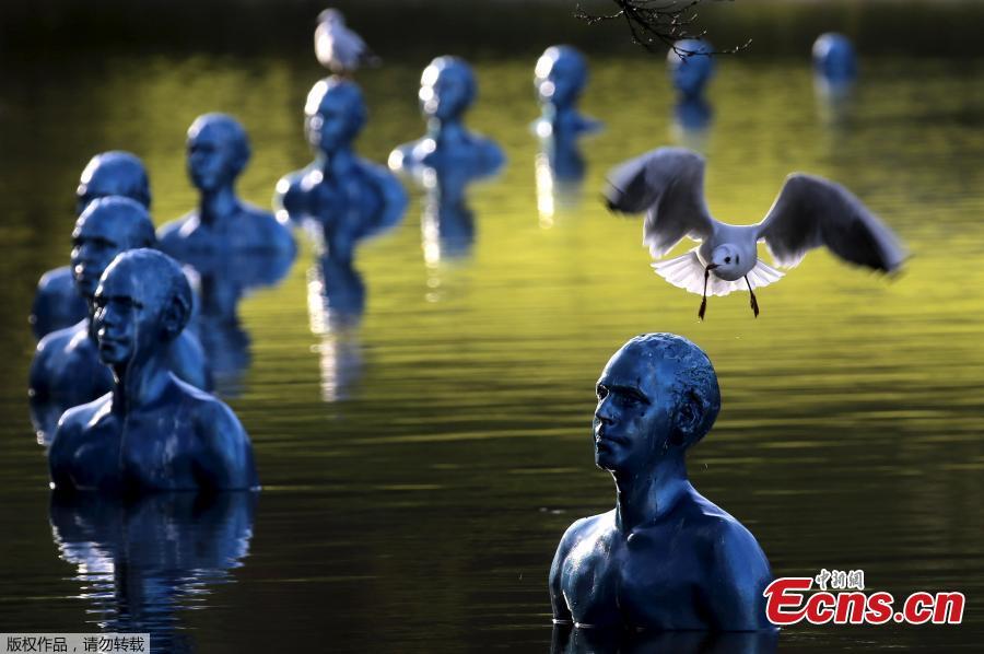 People walk past the art-work "Where the Tides ebb and flow" by Argentinian artist Pedro Marzorati installed in a pond at the Montsouris park ahead of the COP21 World Climate Summit in Paris, France, November 26, 2015. The conference of the 2015 United Nations Framework Convention on Climate Change (COP21) will start on November 30, 2015 at Le Bourget near the French capital. (Photo/Agencies)