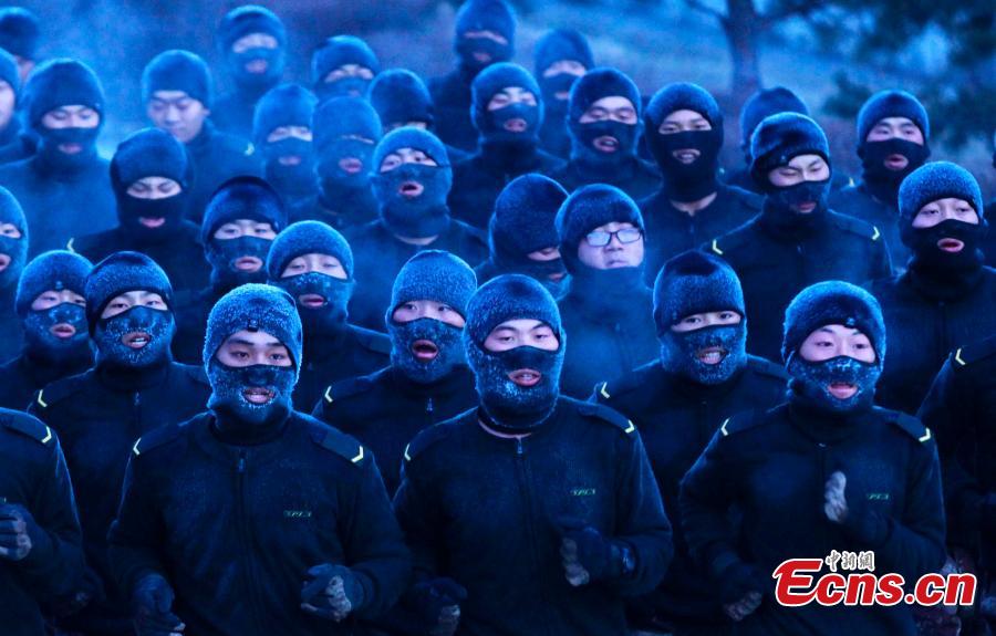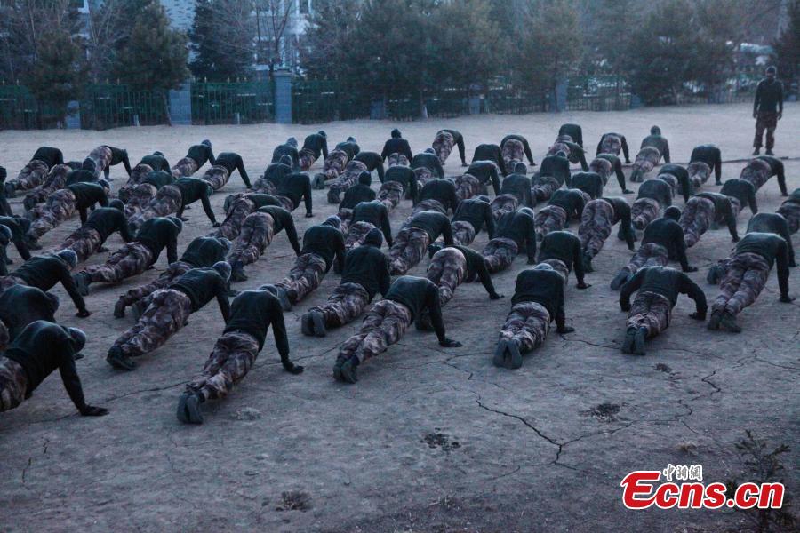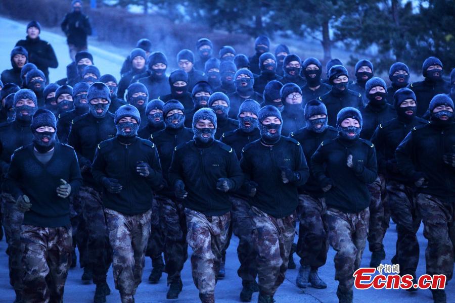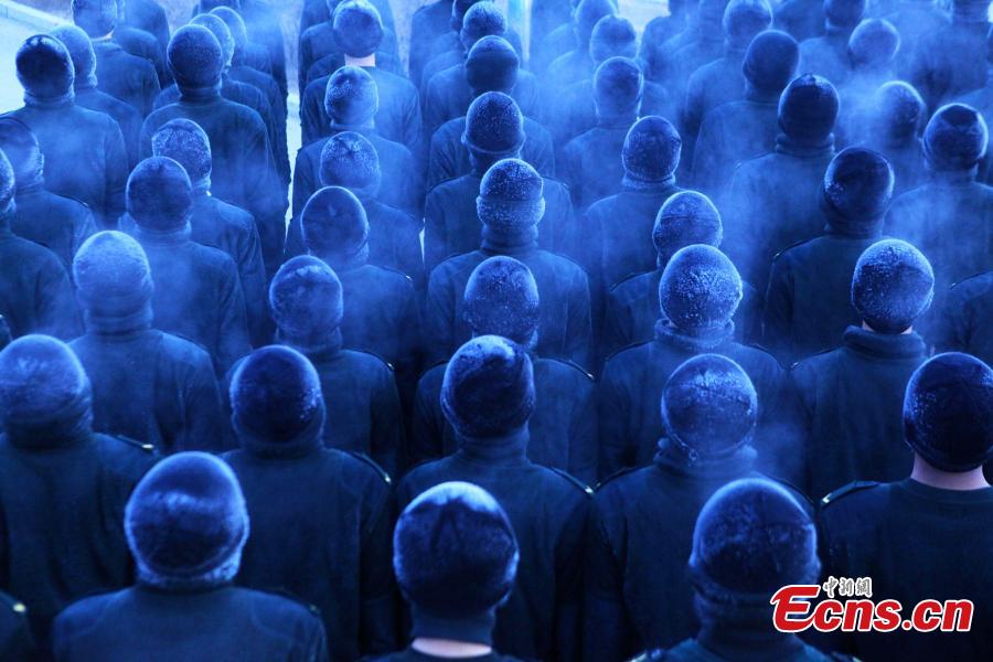 Chinese soldiers from border defense regiments take physical trainings braving minus 20 degree temperature in Heihe, Heilongjiang province on November 29, 2015. Located at 50 degrees north latitude, Heihe city neighbors Blagoveshchensk in Russia across the Amur River, or Heilong Jiang. Temperature dips to as low as minus 50 C in its half-year-long winter. (Photo/CFP)