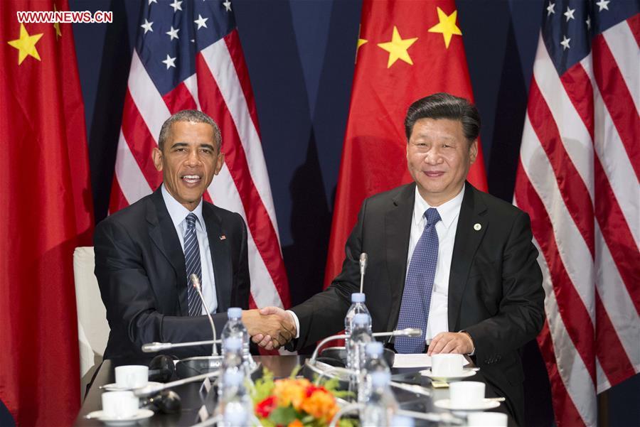 Chinese President Xi Jinping (R) meets with his U.S. counterpart Barack Obama in Paris, France, Nov. 30, 2015. (Photo: Xinhua/Huang Jingwen)