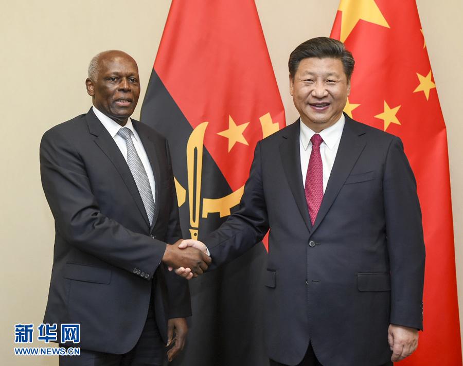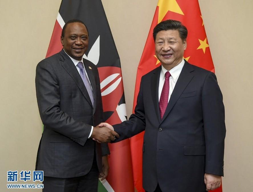 Chinese President Xi Jinping meets with the President of Gabon,el Hadj Omar Bongo Ondimba in Johannesburg on December 3, 2015. (Photo/Xinhua)