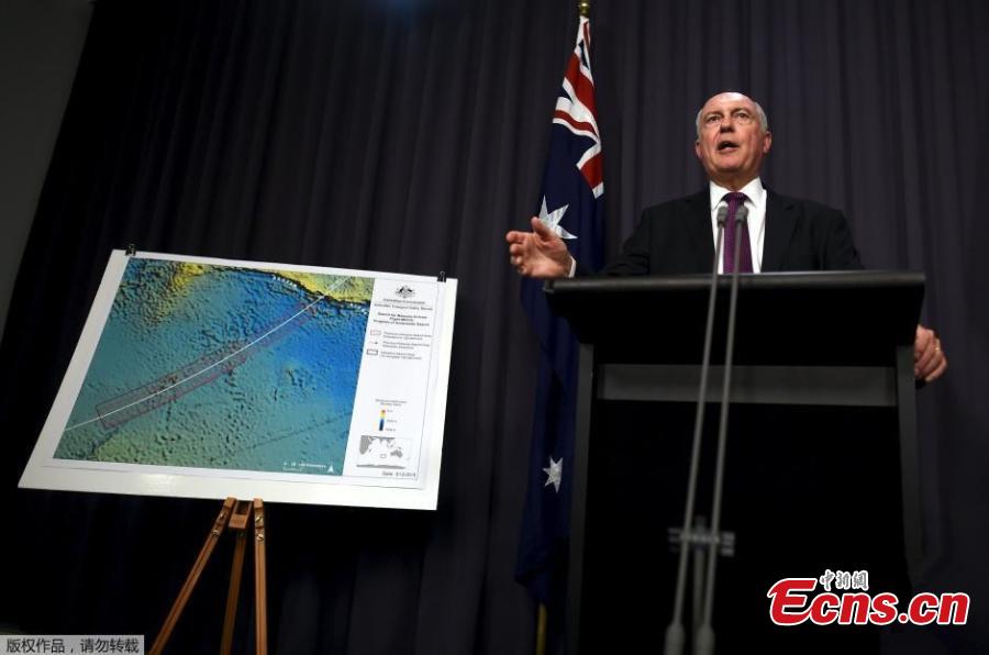 Australian Deputy Prime Minister Warren Truss introduces the highest possible area for the search of MH370 during a press conference at the Parliament House in Canberra, Australia, Dec. 3, 2015. Australian authorities have expressed renewed confidence that they will find the missing Malaysia Airlines flight MH370 within the current search zone. (Photo/Agencies)