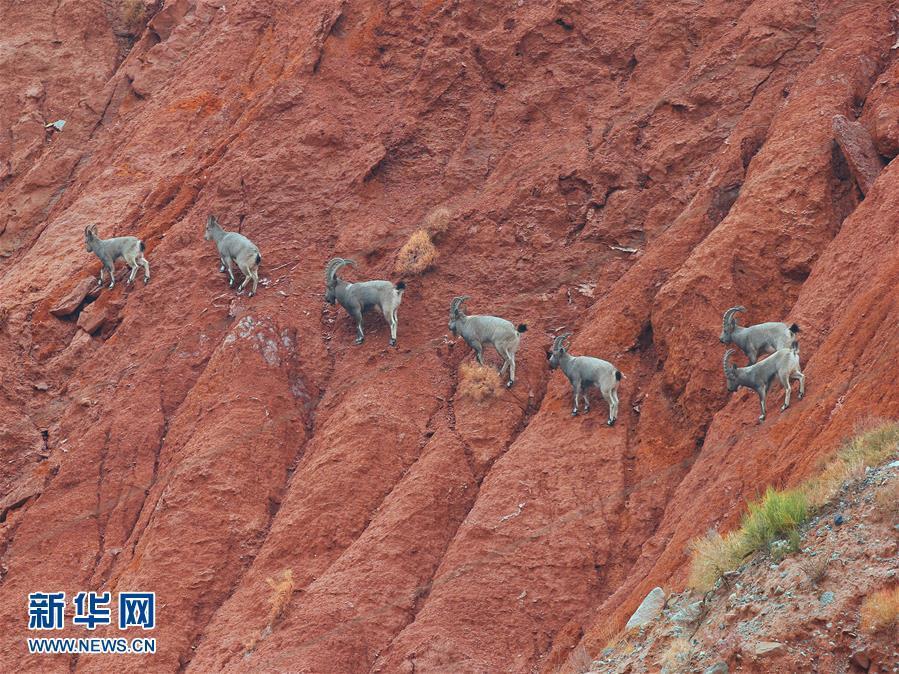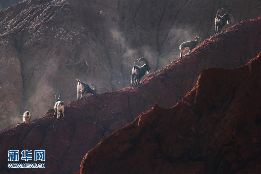 An ibex, or wild goat searches for food in a natural conservation area in Aksu Prefecture, Northwest China's Xinjiang Uygur autonomous region, on November 27, 2015. Thanks to various conservation measures, the number of wild goats has kept growing in Aksu Prefecture located south of the Tianshan Mountains. Wild goats, under first class national protection, live in Xinjiang, northwestern Gansu province and northwestern Inner Mongolia autonomous region. (Xinhua/Ma Guangyi)