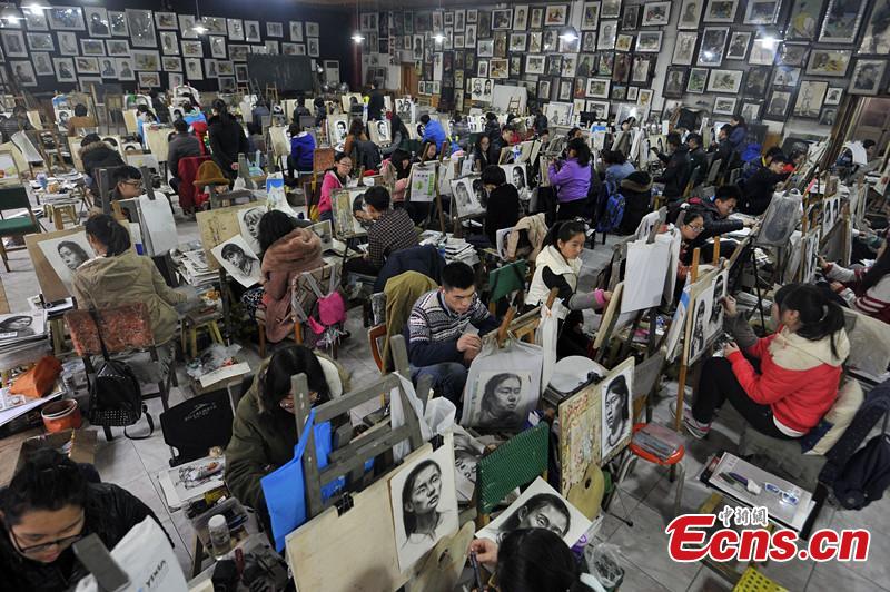 Dec. 8th, Taiyuan, many art students are preparing for the national art examination in Shanxi Province. (CNS photo/Wei Liang)