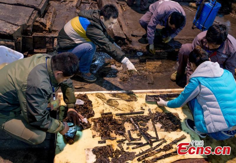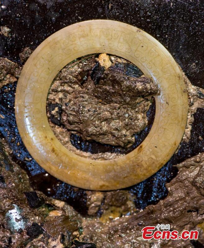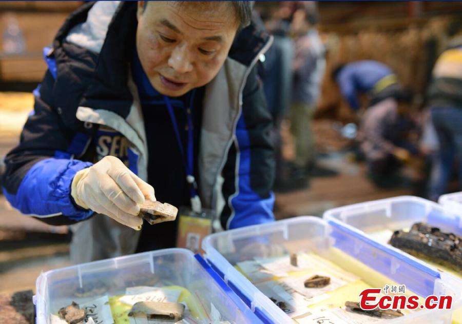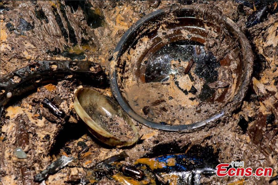 The photo shows “nine ding”, or ancient cauldrons found during the excavation into the tomb of "Haihunhou" (Marquis of Haihun) in Nanchang, East China's Jiangxi province. The number nine was only used by Chinese emperors in early feudal times, and it is common for tombs of emperors to be called 'nine-ding tombs', according to archaeologists. Archaeologists believe the tomb belongs to Liu He, grandson of Emperor Wu. He was given the title "Haihunhou" after he was deposed as emperor after only 27 days. Haihun is the ancient name of a very small kingdom in the north of Jiangxi. (Photo: China News Service/ Guo Jing)
