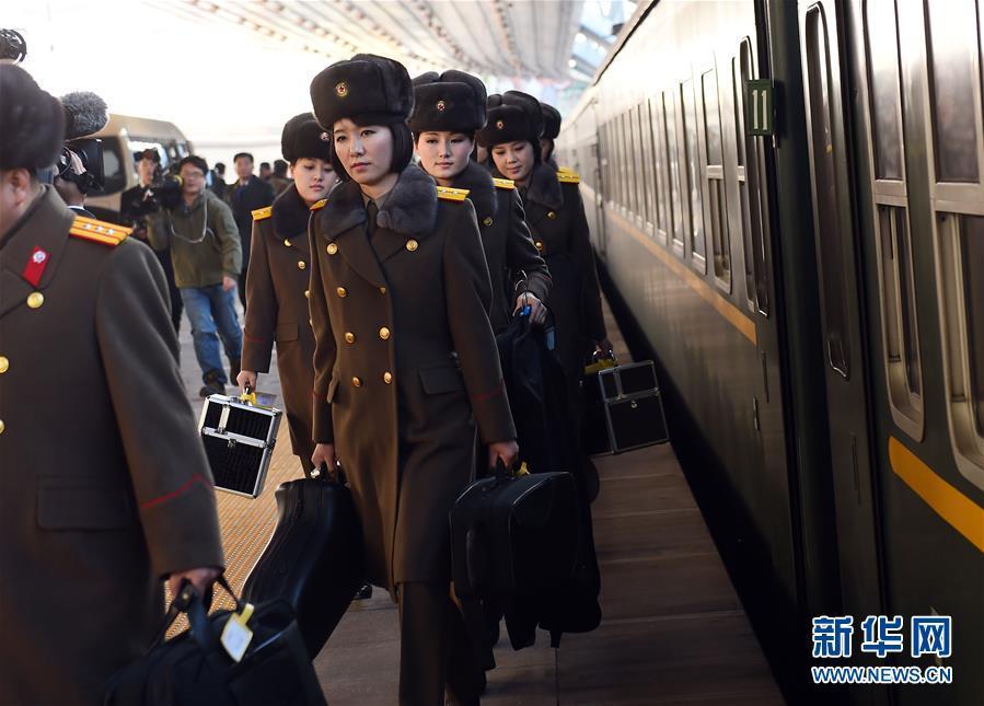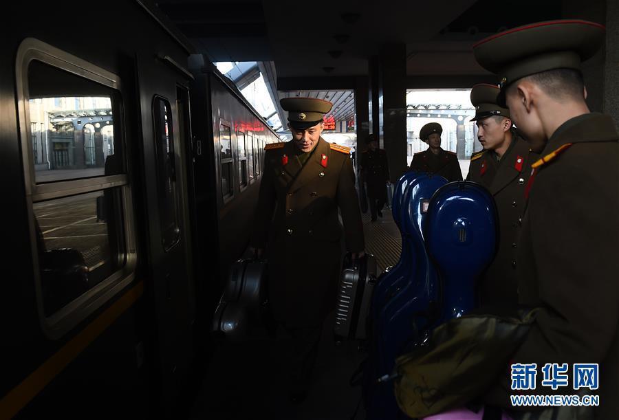 Members of the State Merited Chorus from the Democratic People's Republic of Korea (DPRK) get off the train at the Beijing Railway Station in Beijing, capital of China on December 10, 2015. Two troupes -- the State Merited Chorus and the Moranbong Band -- will perform in the National Center for the Performing Arts in Beijing from Dec. 12 to 14. The visit will contribute to "deepening friendship" and cultural exchanges between the two countries. (Photo/Xinhua)