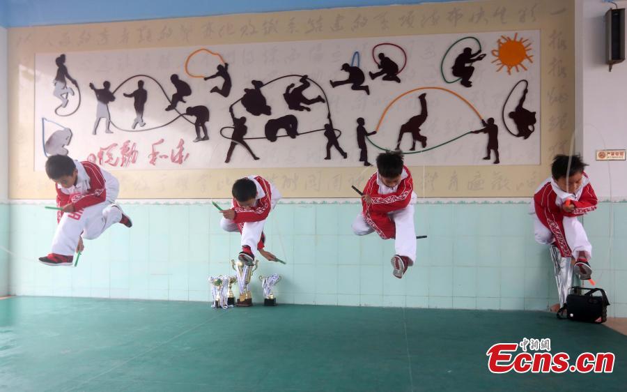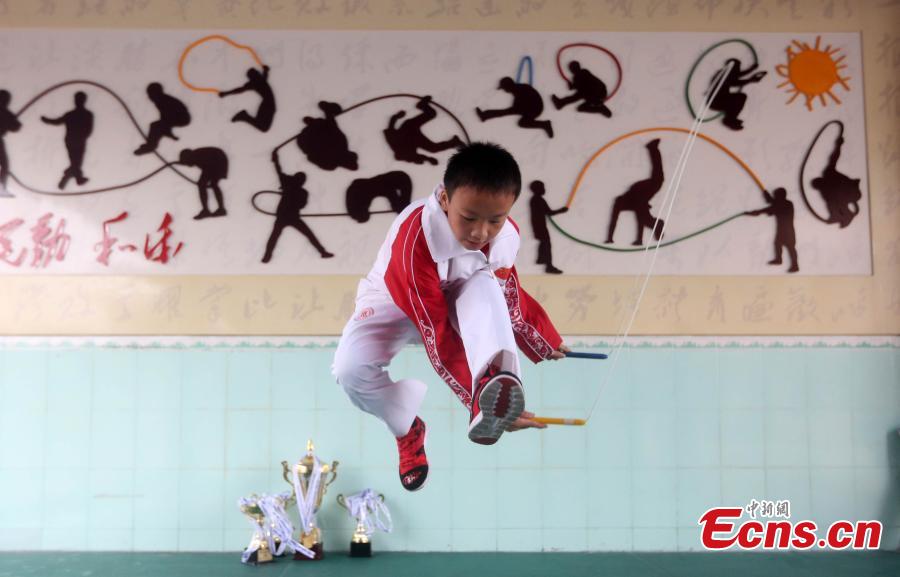 Cen Xiaolin, a fifth grader from Qi Xing Primary School in Guangzhou, South China’s Guangdong province practices rope skipping at school. Cen broke the world record for the rope skipping at the World Inter-School Rope Skipping Championship 2015 in Dubai. The 11 year old's average jump speed of 7.3 times per second was so fast that the eight judge panel demanded video footage to make sure it was correct. Despite the incredible feat, the official number was 108 skips in 30 seconds, because the contest only accounts for lifts of the right leg. The international contest was the first of its kind and attracted contestants from Austria, Belgium, China, India, Iran, Malaysia, Pakistan, UAE and the United States. (Photo/CFP)